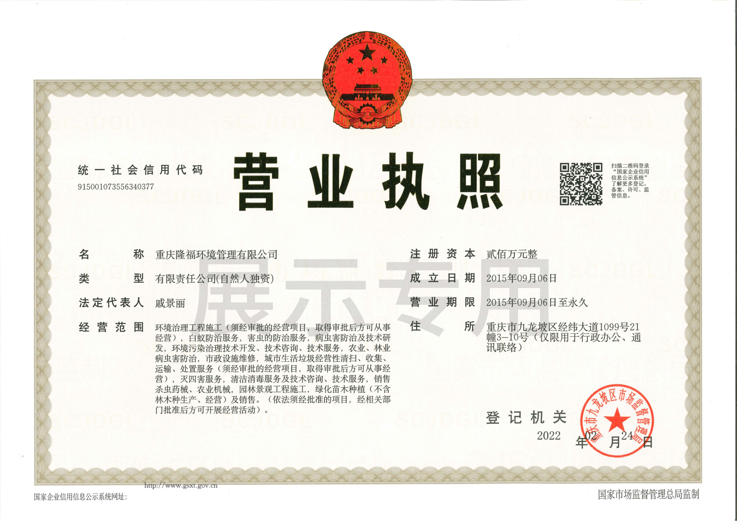 重慶隆福環(huán)境管理有限公司(以下簡(jiǎn)稱“我司”)成立于2015年,另于2022年成立海南分公司。是一家從事專業(yè)白蟻防治、害蟲(chóng)消殺、消毒防疫、園林景觀施工、滅蟲(chóng)藥械銷售為一體的綜合性服務(wù)公司。